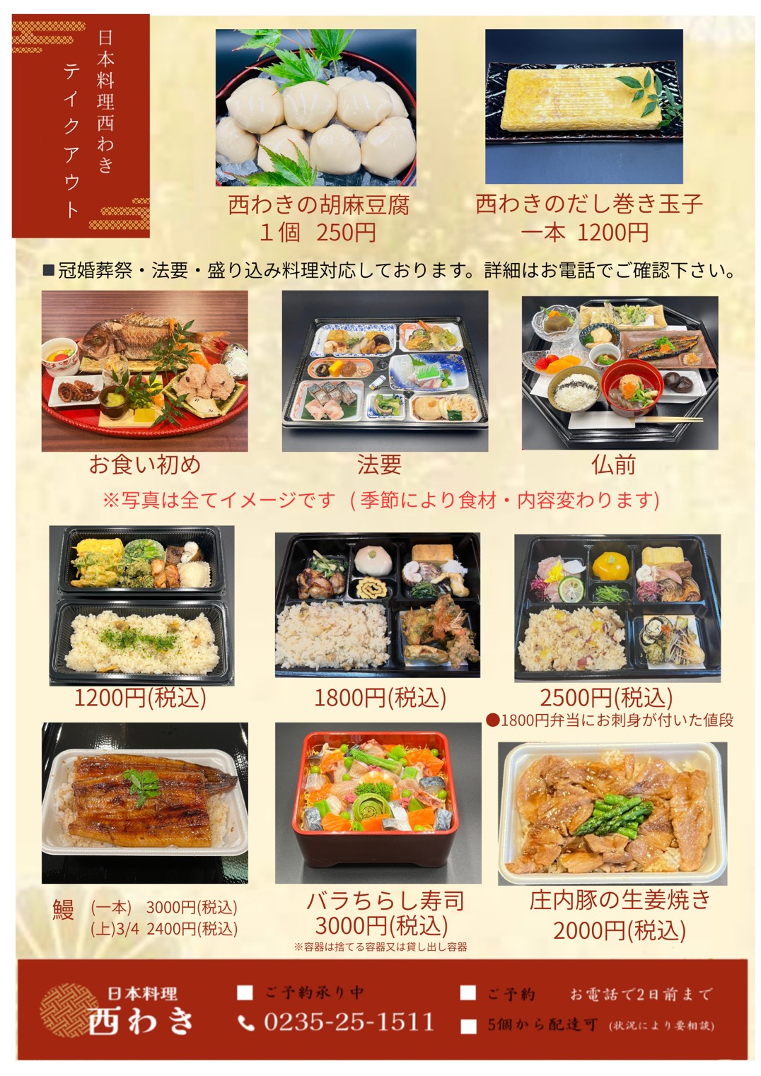 日本料理 西わきからのお知らせ