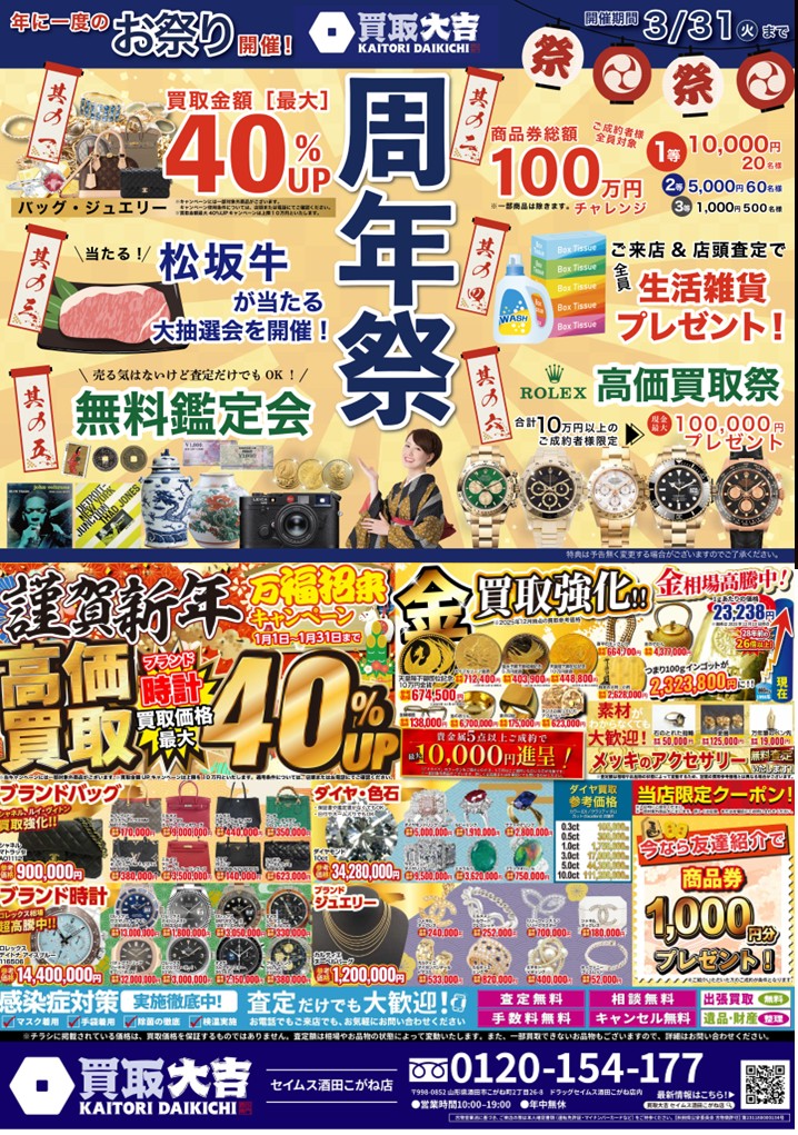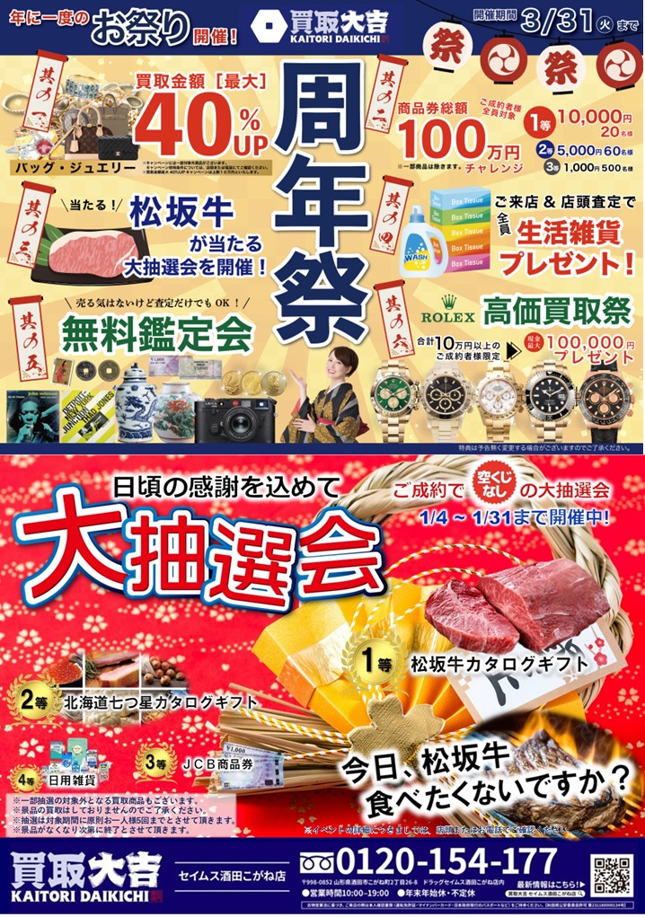 買取大吉 ドラッグセイムス酒田こがね店からのお知らせ