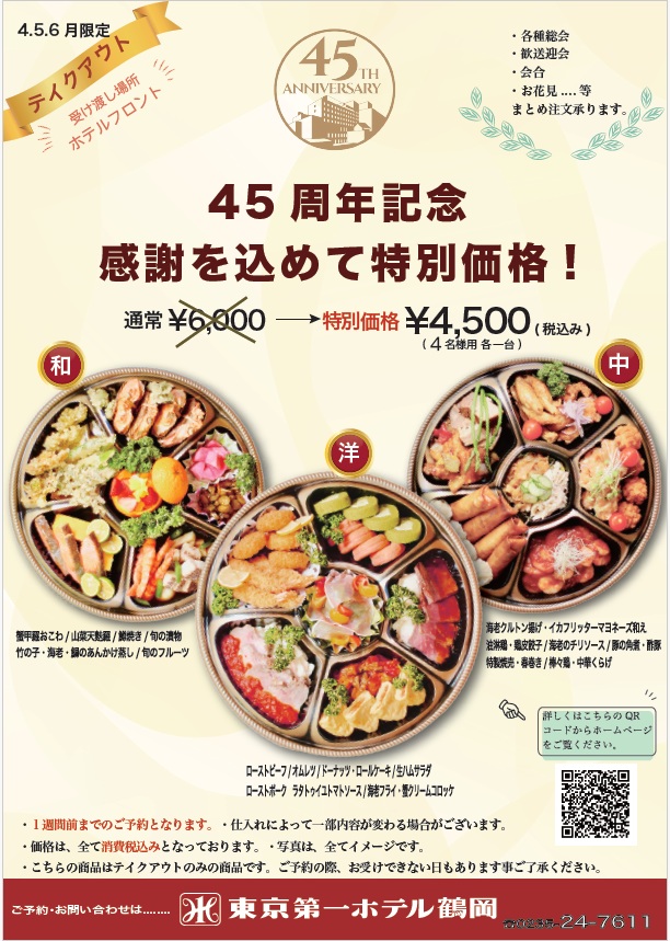 2026年4月、東京第一ホテル鶴岡は開業45周年。