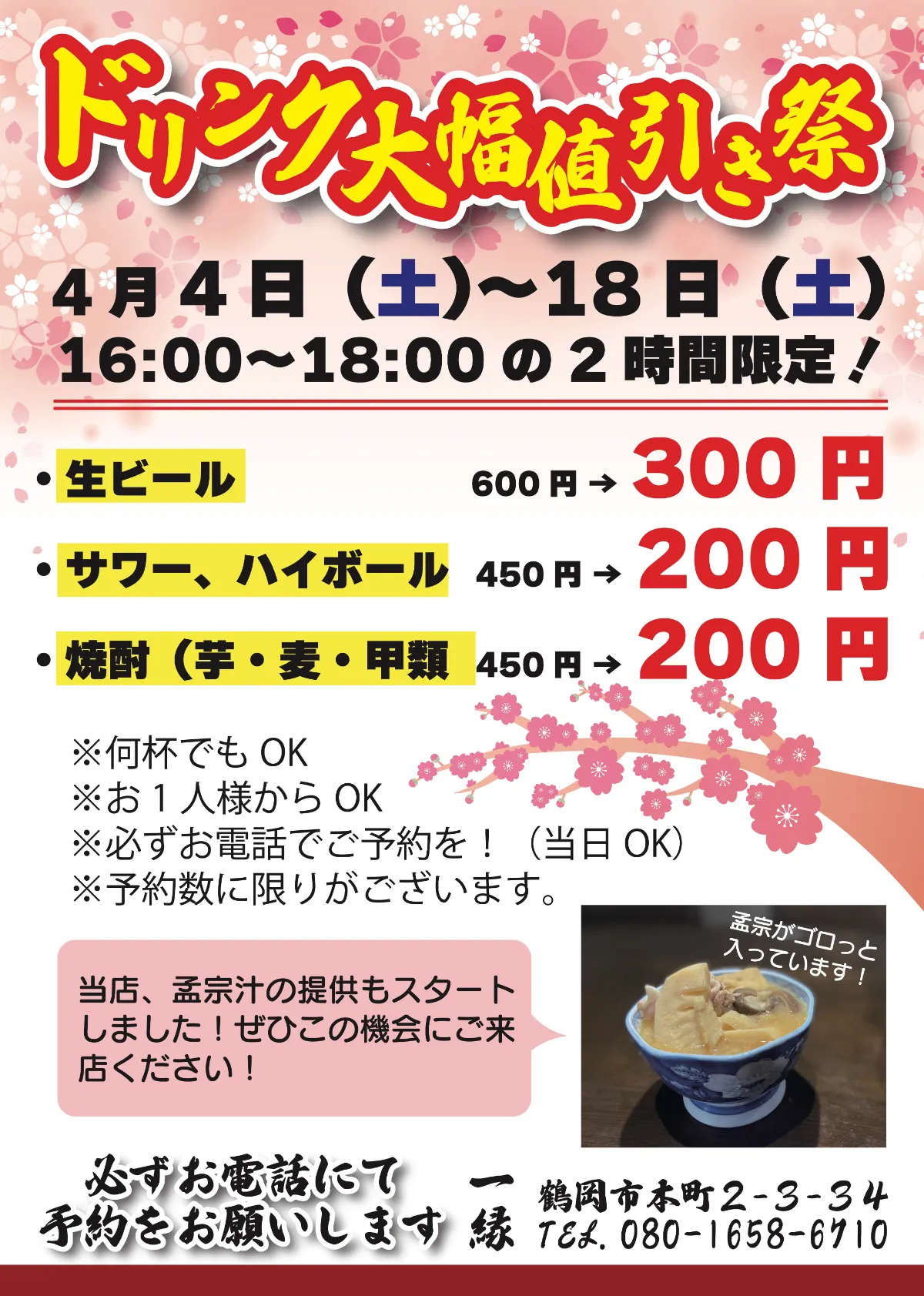 ・サワー・ハイボール450円→200円
