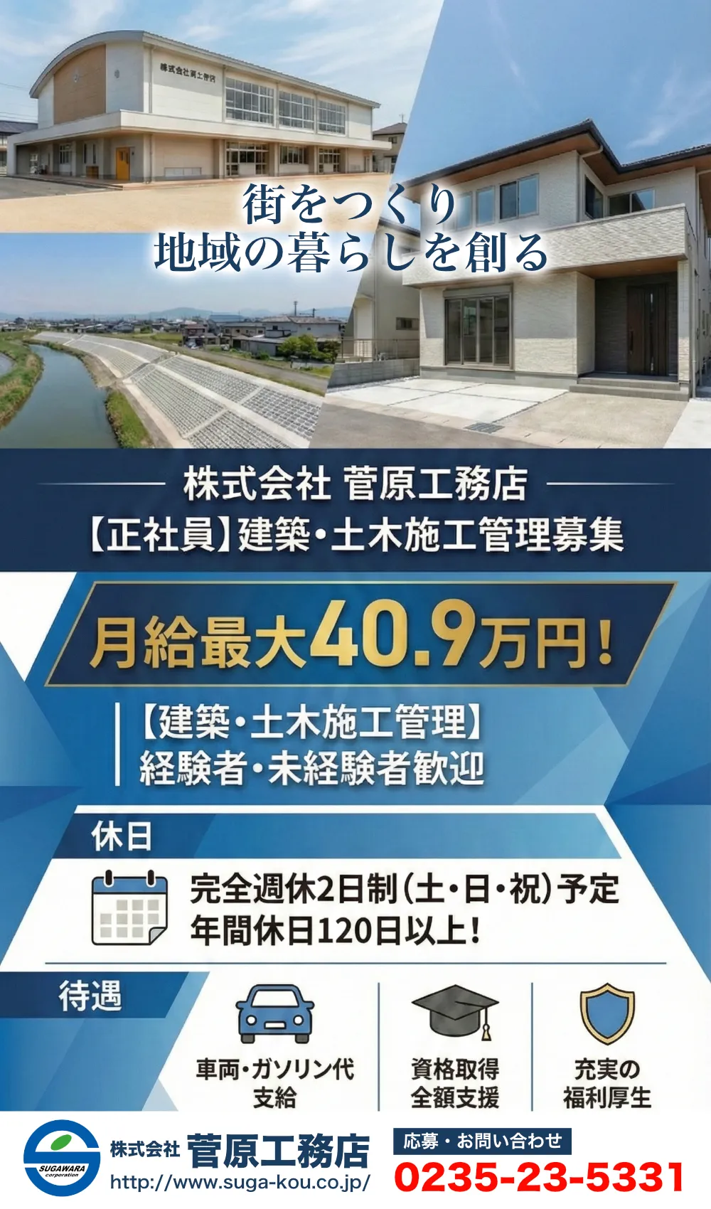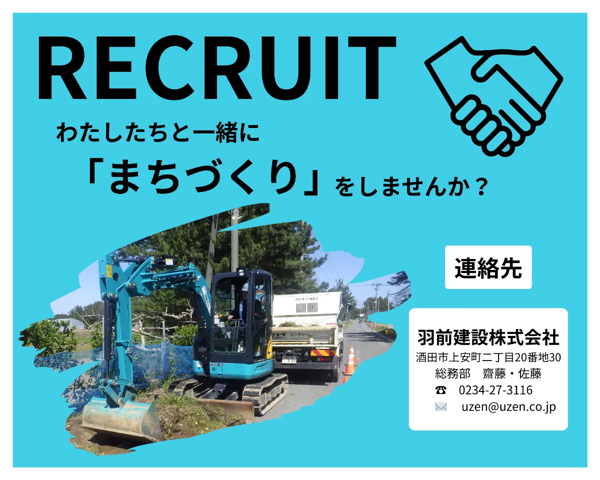 羽前建設株式会社では、“まちづくり”を一緒に支えてくれる正社員を募集しています。