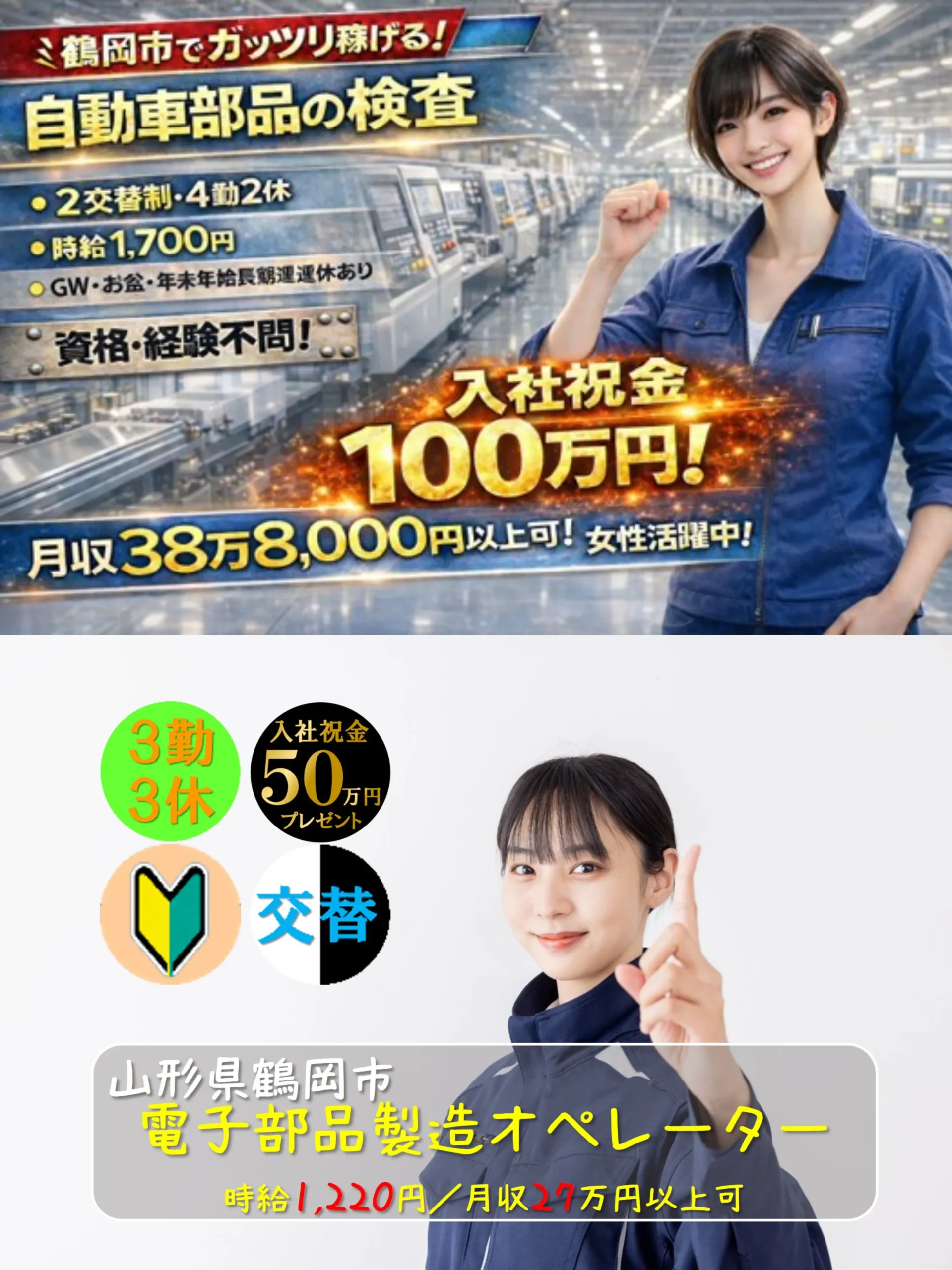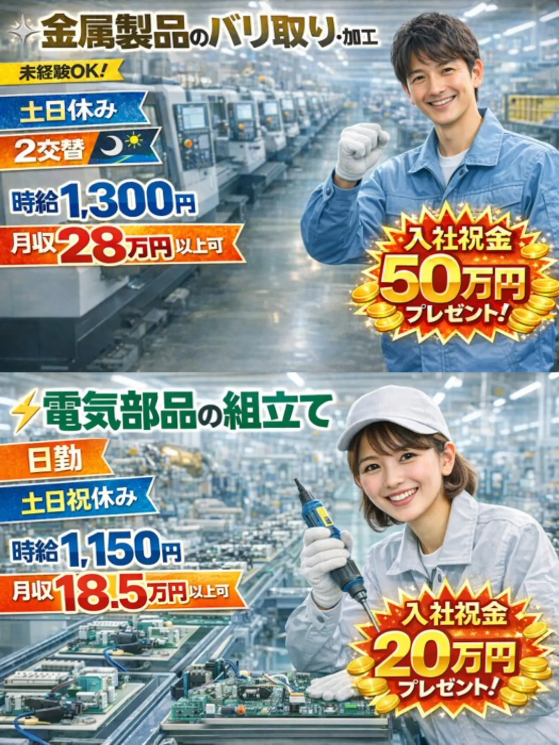 ③自動車部品の加工など(お仕事NO:0006)または金属製品の分別やセット作業(お仕事NO:0038)