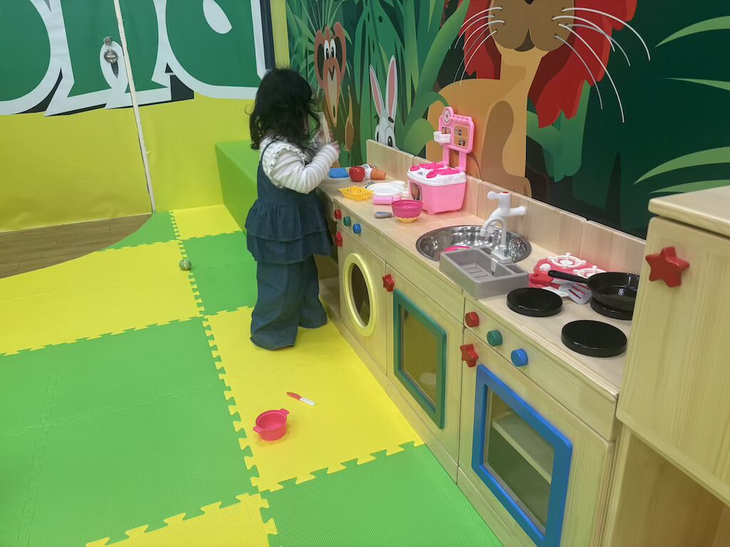 さらに奥は、小さな子向けのおままごとエリアになっています↓