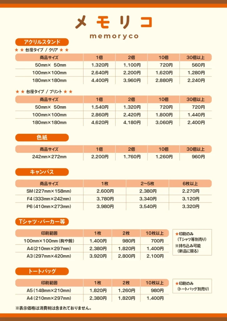 そんなメモリコの気になる料金表はこちら↓