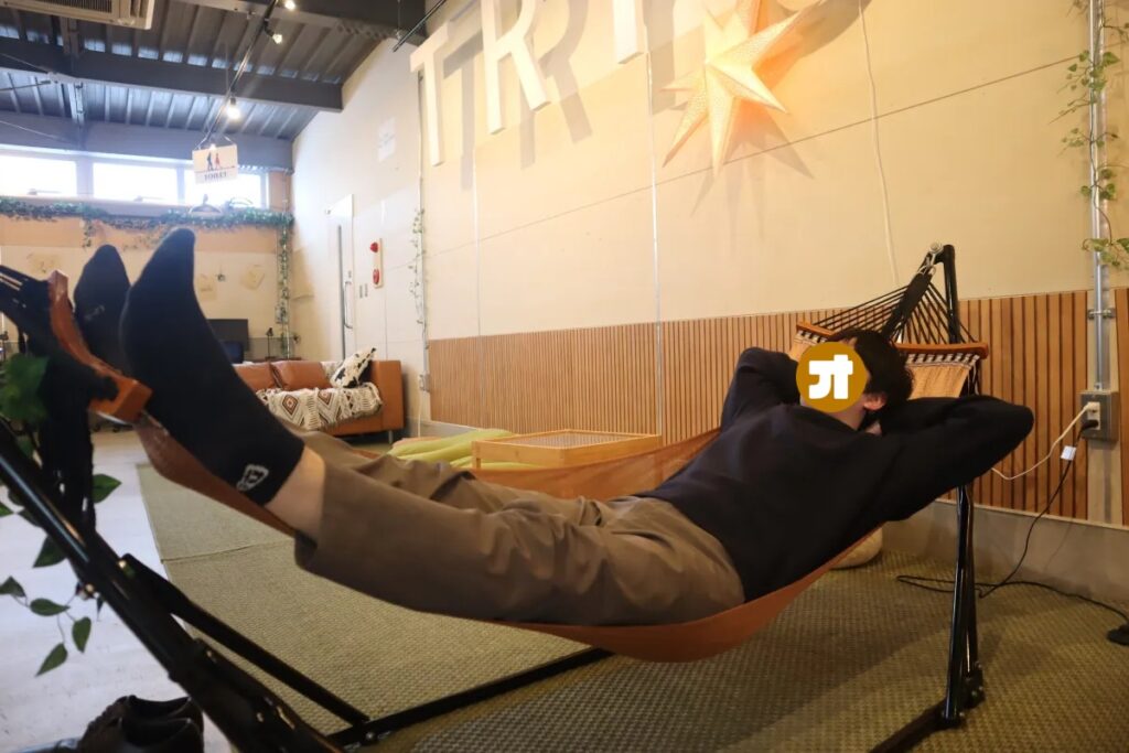 ちょっと疲れた時や寝ながら仕事したい時にはこんなリラックススペースもありまっせ↓