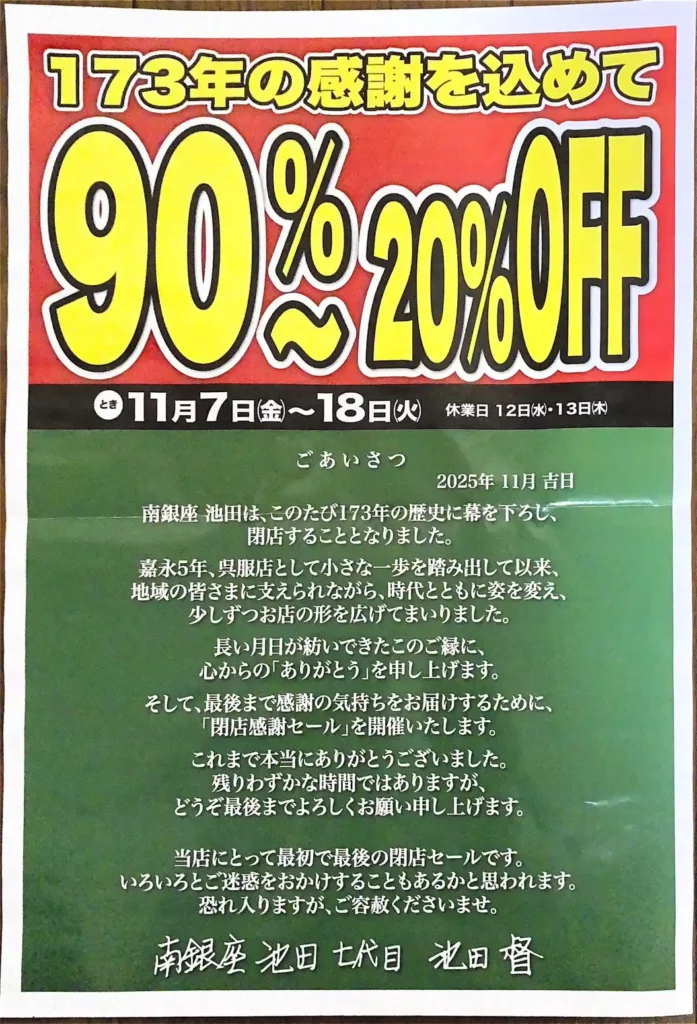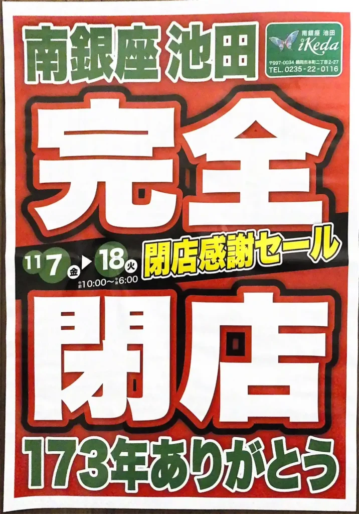 鶴岡市民に親しまれた老舗デパート「南銀座 池田」が閉店しちゃうみたい。