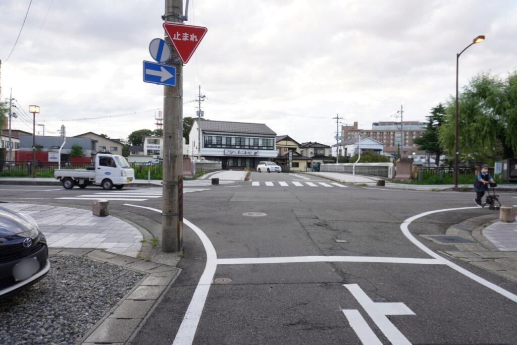 お店を正面に見て、右がすぐ川端通りで開運橋があり、荘内病院方向↓