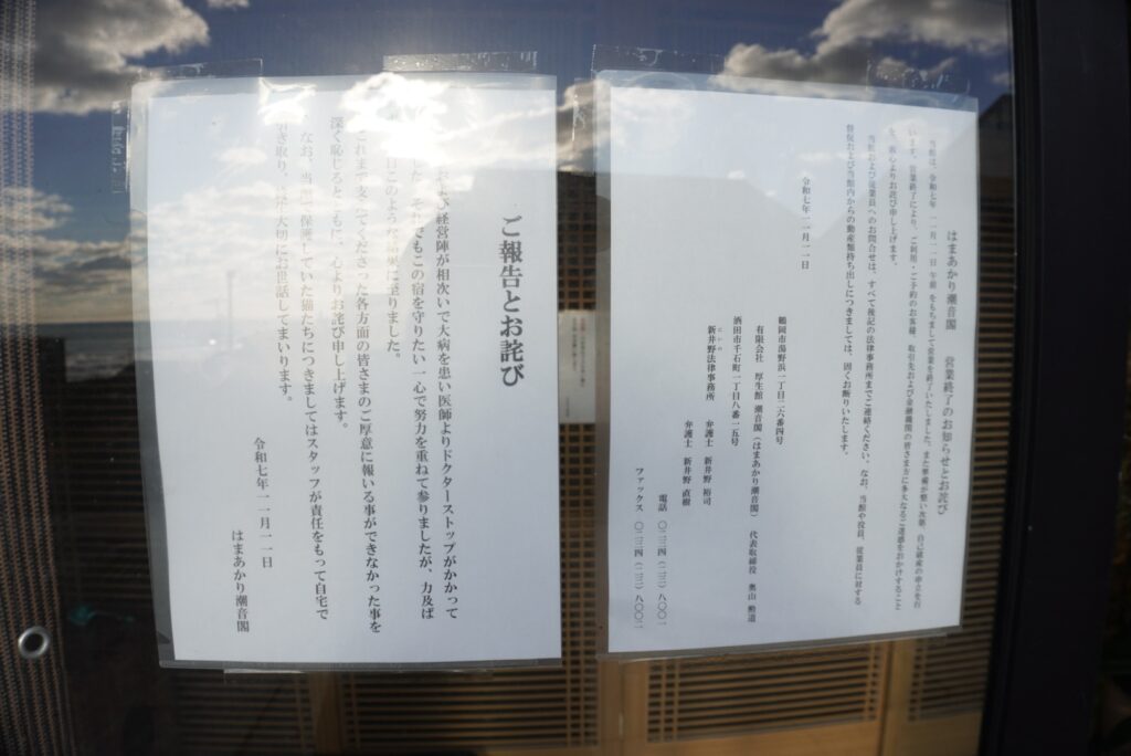 鶴岡市湯野浜温泉の宿「はまあかり 潮音閣」が閉業していました。