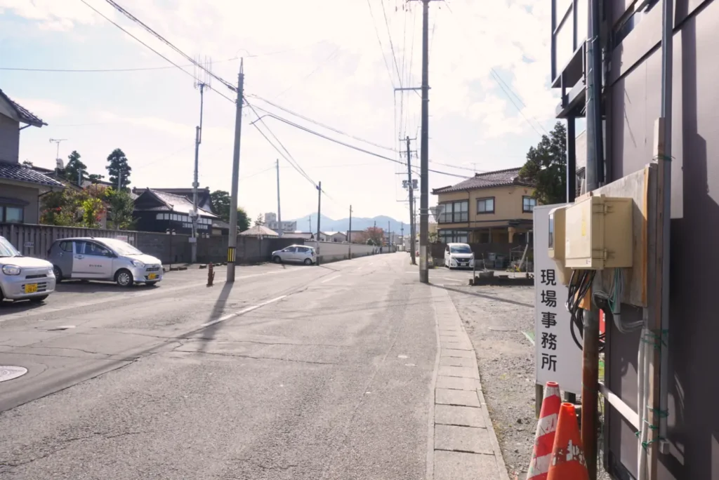 建物を正面に見て、右は荘内病院方向、三浦鶏肉店や文具店の鶴文堂があり↓