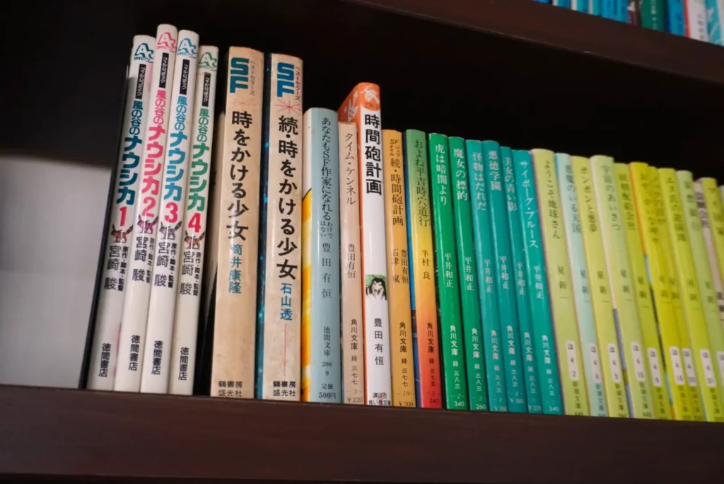 本棚には齋藤さんの携わった本のほか、ジャズ関連書籍、SF小説その他がずらり↓