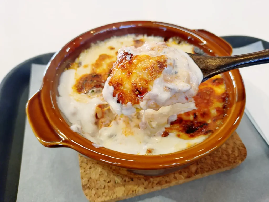 ごはんをミートソースのコク・ホワイトソースのまろやかクリーミーが包んで、ハフハフいただけば心も体もほっこりですね!