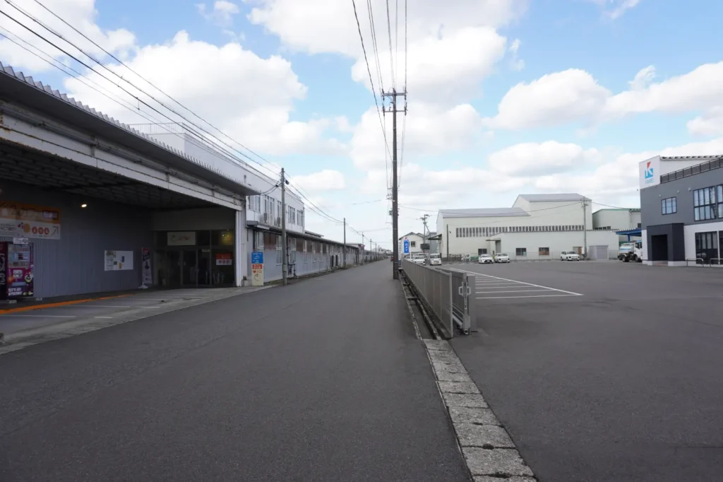建物を正面に見て、右に進むとカメイ庄内支店↓