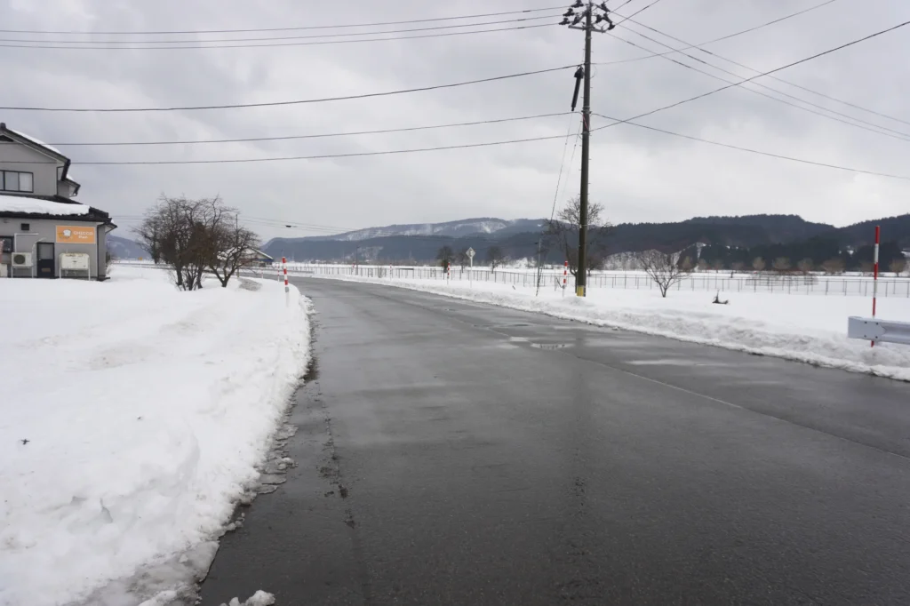 お店を正面に見て、右に進むと立谷沢まちづくりセンター方面↓