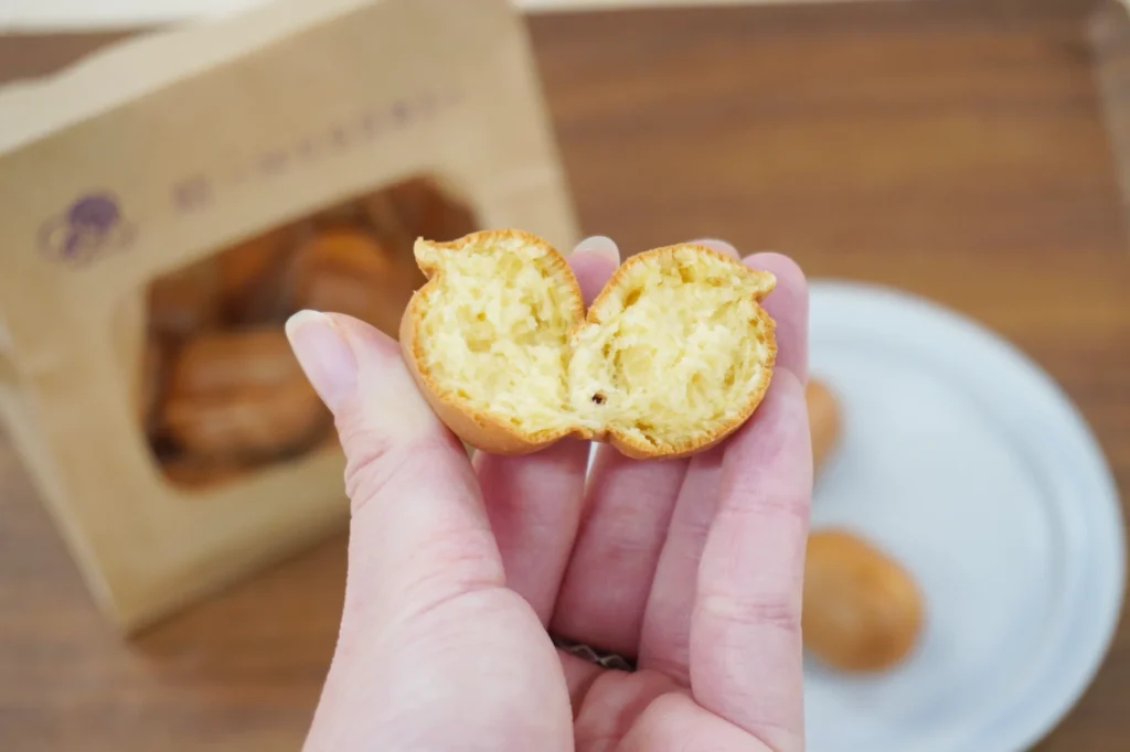 まだ温かさの残るできたてベビーカステラは、外はさっくり中はふんわりもっちり。