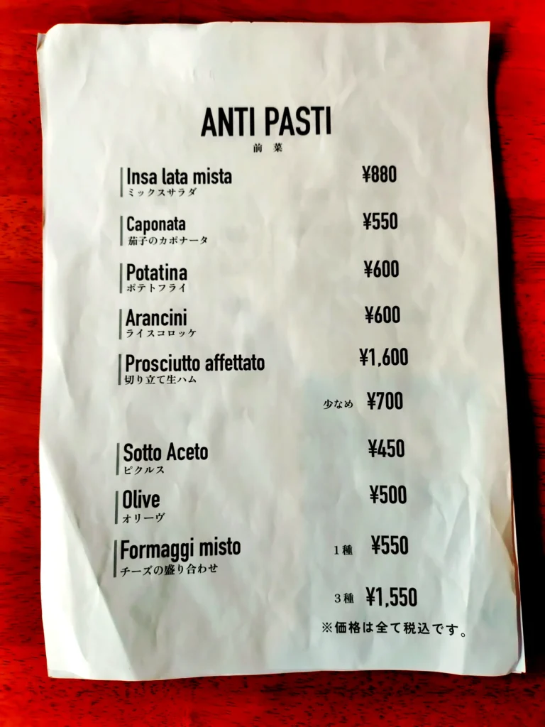 なお、夜のメニューはこんな感じ!↓