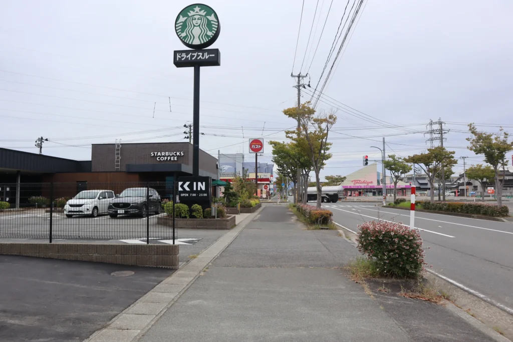 建物を正面に見て、右はスターバックスやガストがあり国道7号方向↓