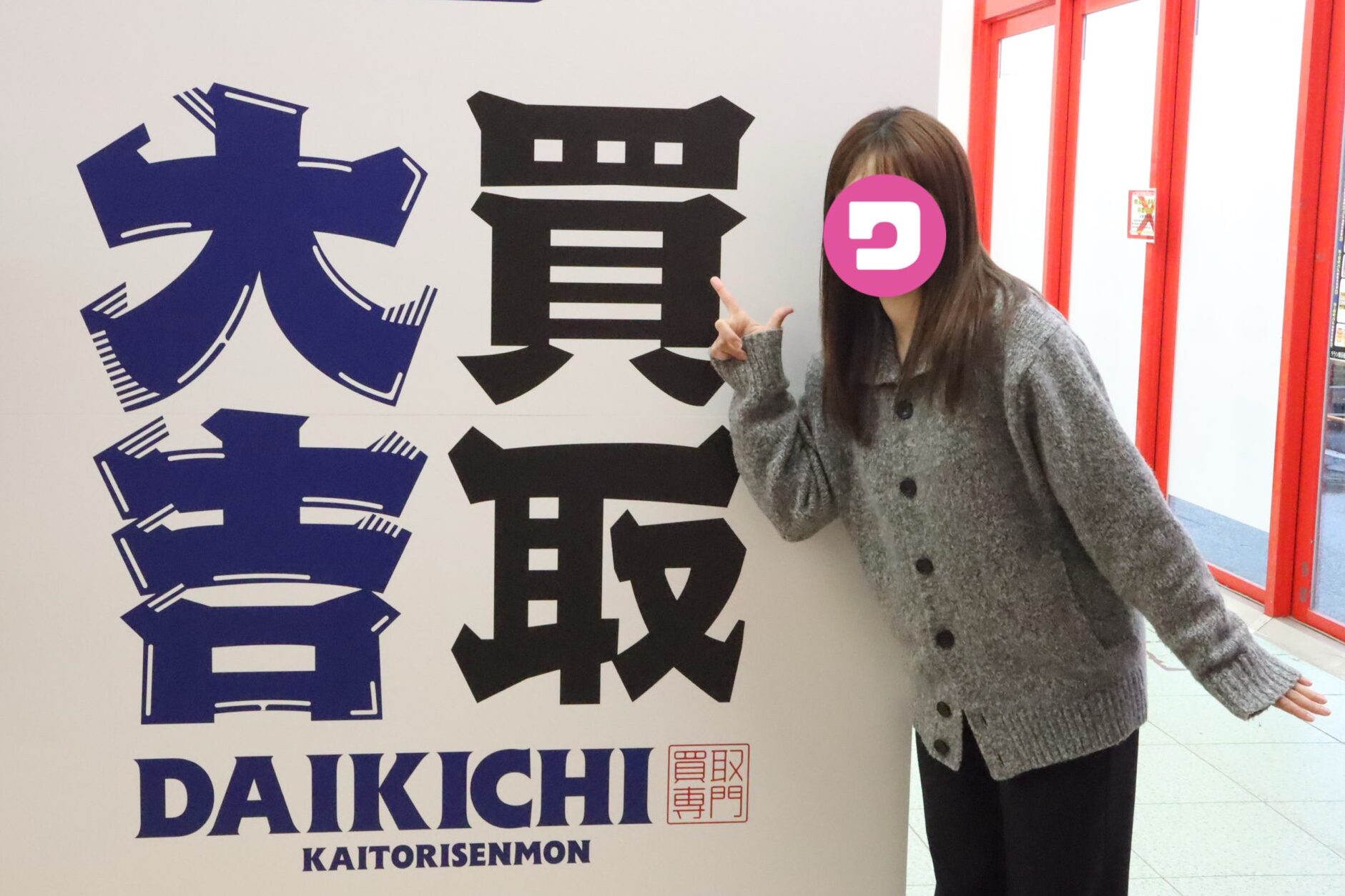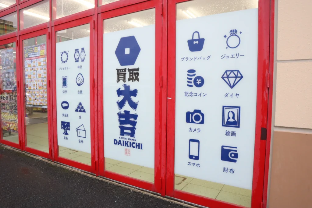 正面を見て右側のガラスにはっきりと「買取大吉」とあります↓