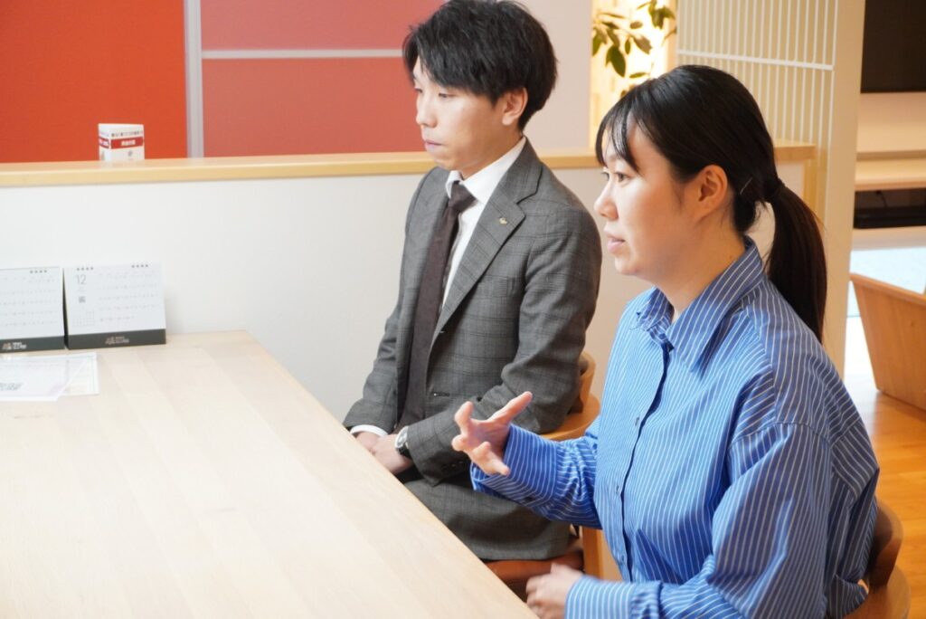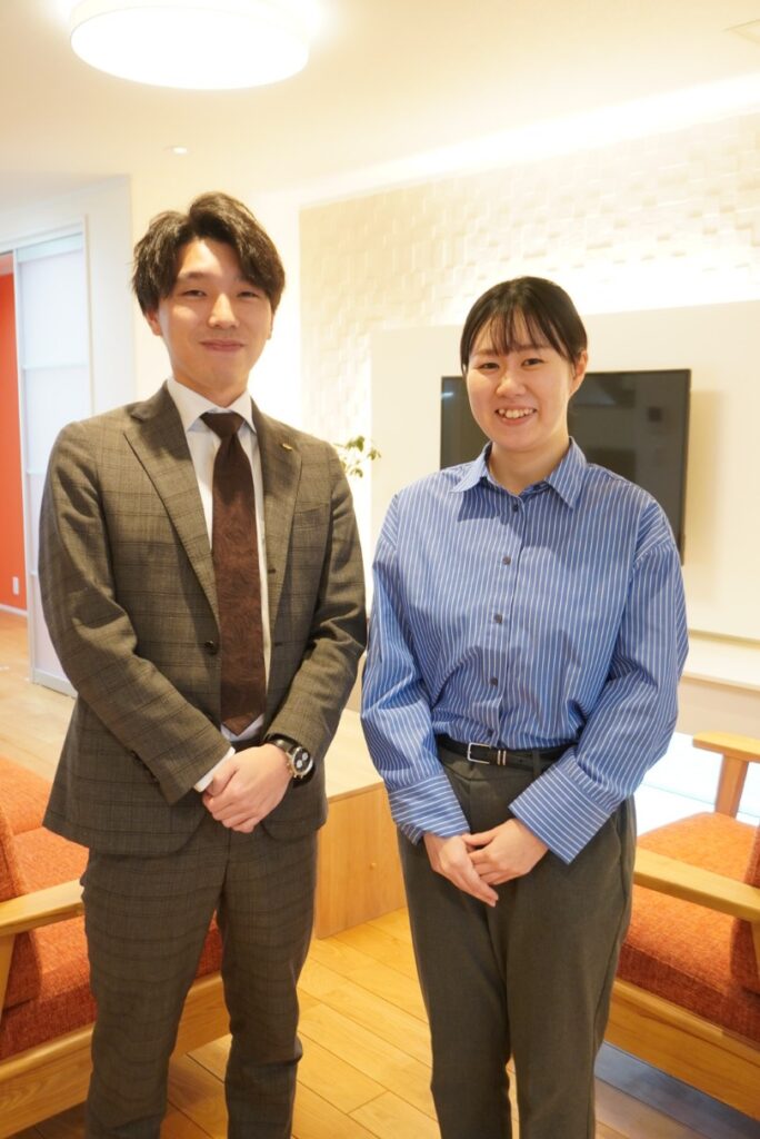 リフォームアドバイザーで主任の後藤陸虎(りく)さん(左)と、ホームアドバイザー担当の池田麻里子さん(右)。