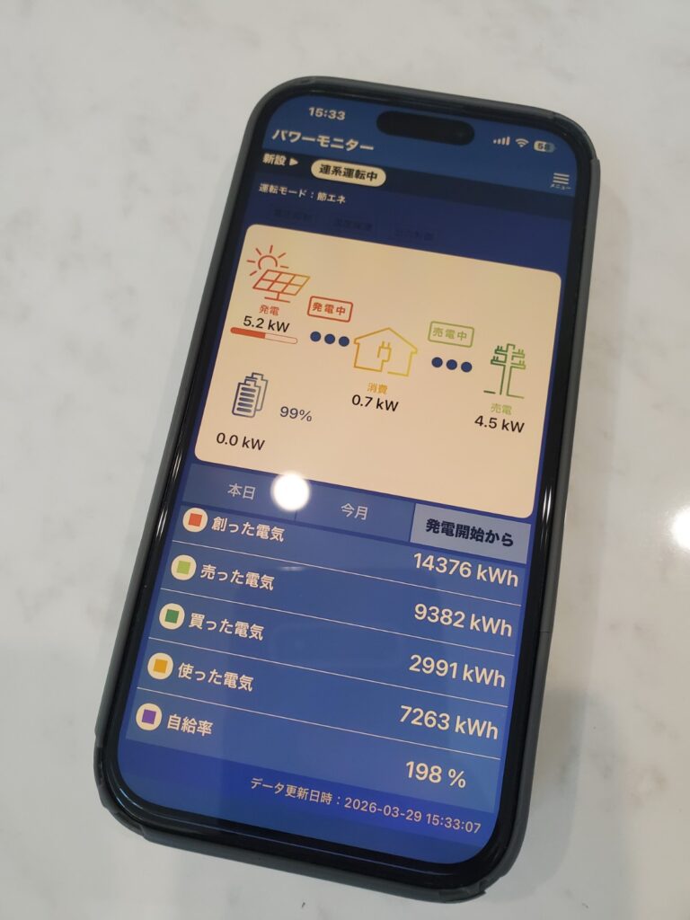 大型の太陽光も付けられるとのことだったので、その恩恵を最大限活かすために蓄電池を2台設置した点はこだわりですね。