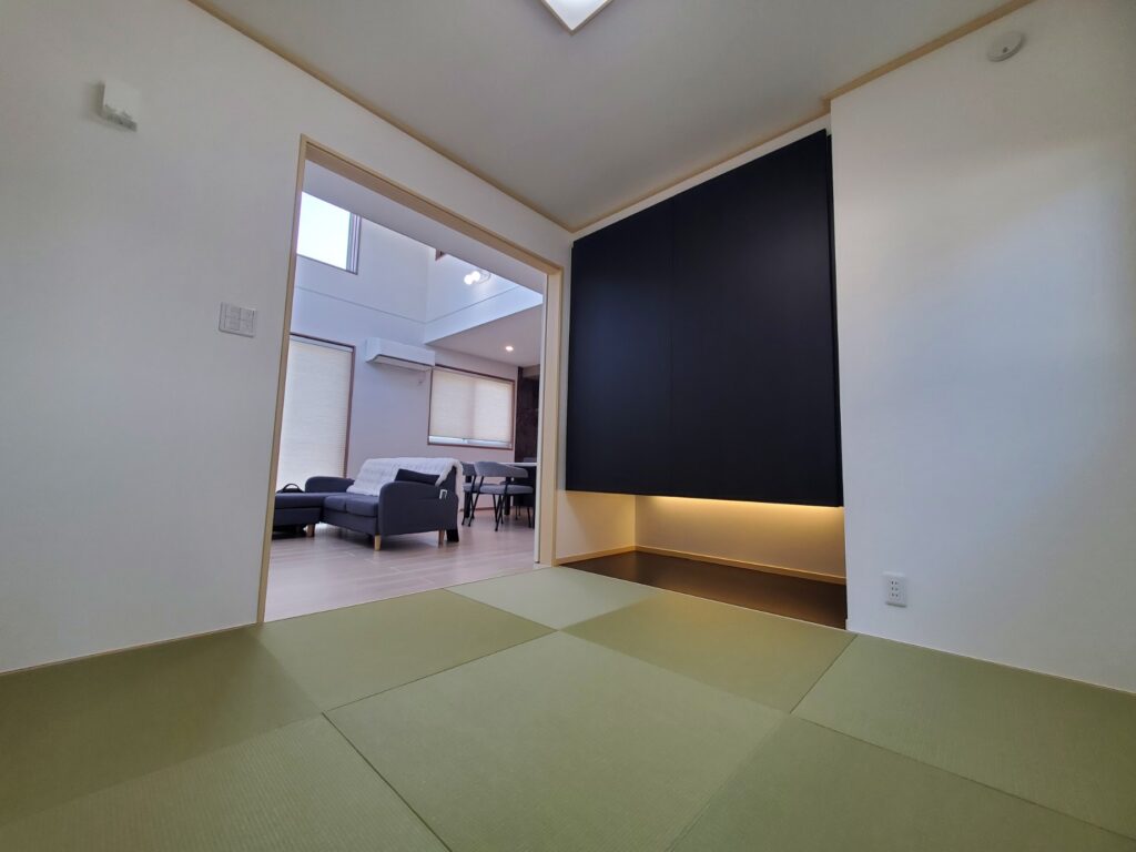 リビング併設の和室は、家事や一休みにも使えるほどよい独立感で居心地もGood↓
