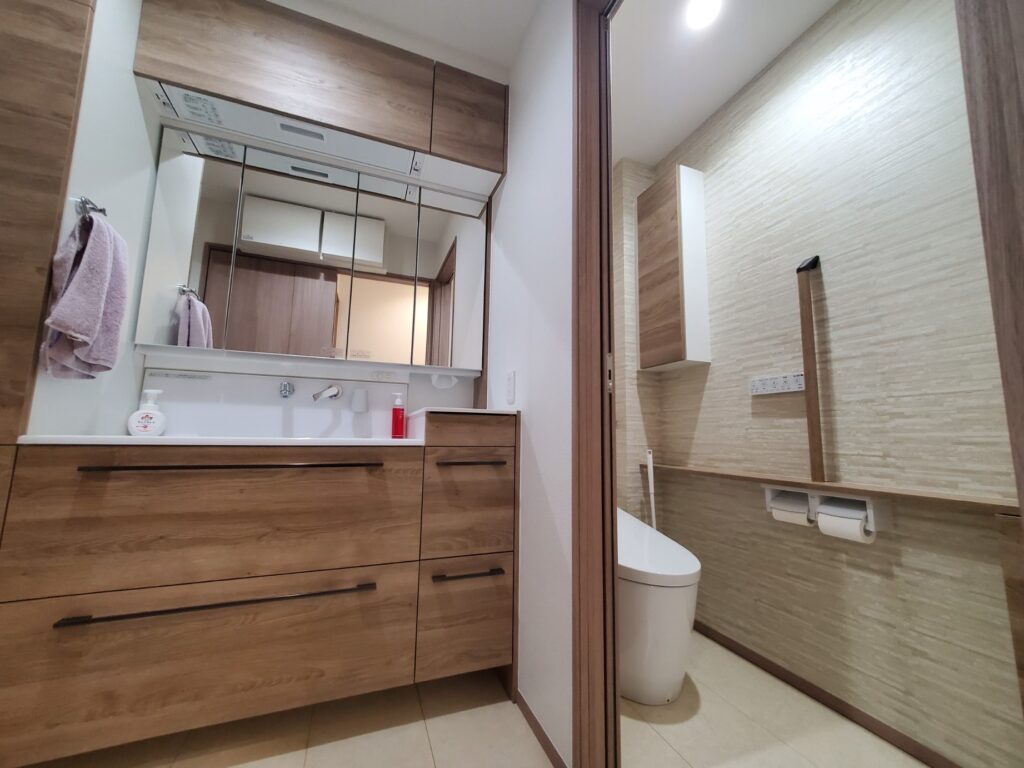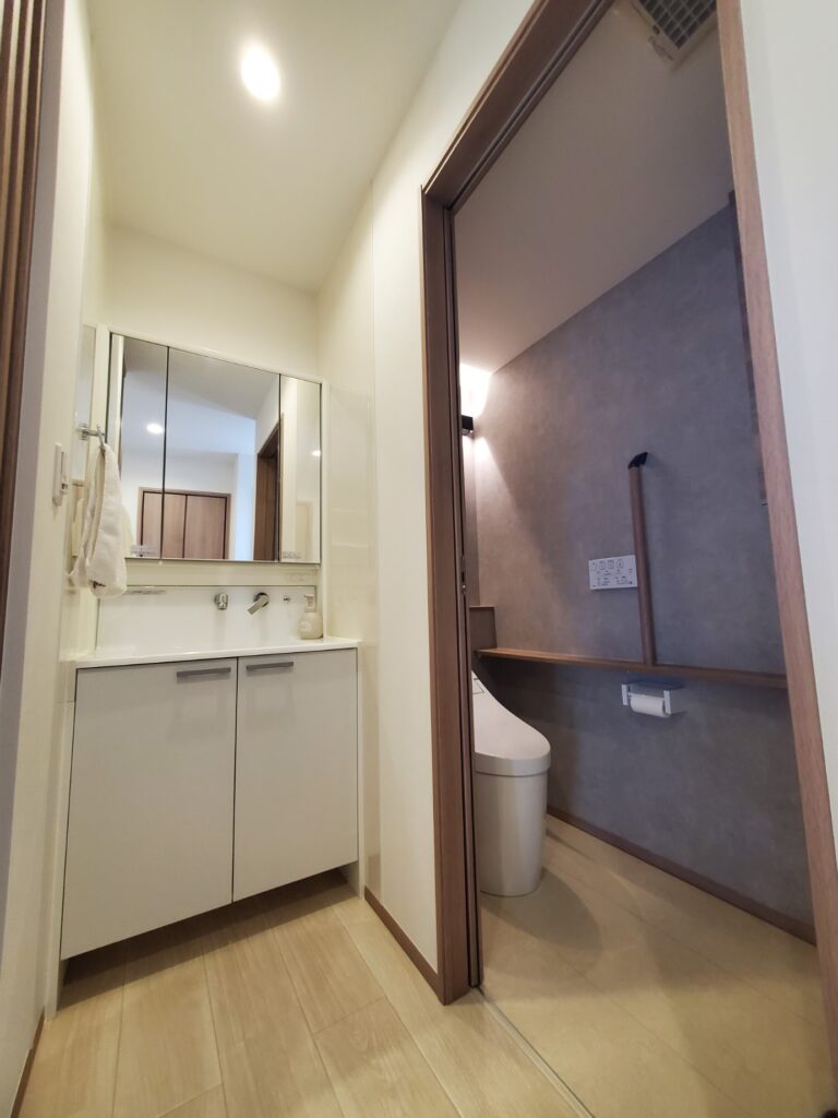 洗面所とトイレは玄関側通路からもアクセスがしやすい。
