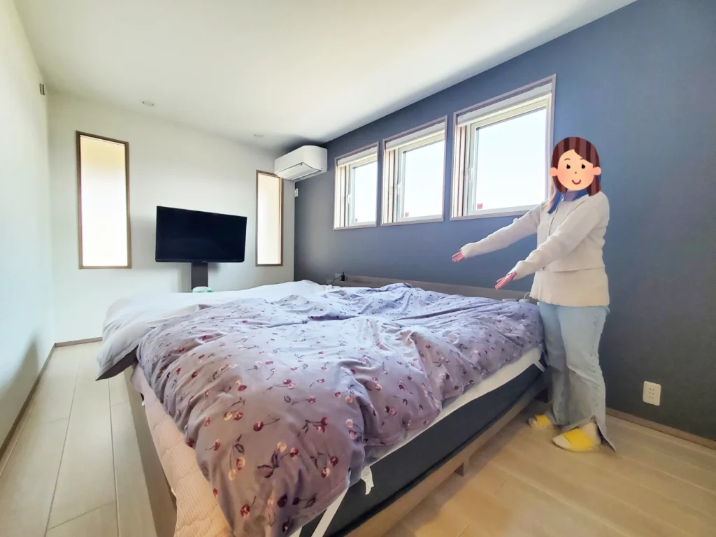 2階へ上がってすぐの部屋は、リビング同様に自然光が明るく差し込む主寝室↓