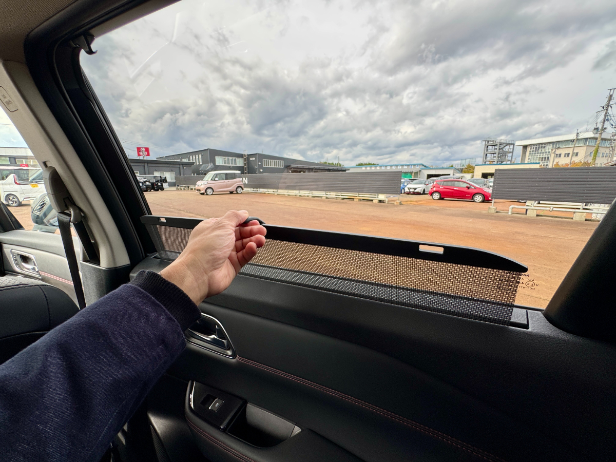 後部座席の窓についてる日よけのリヤドアロールサンシェードも標準装備↓