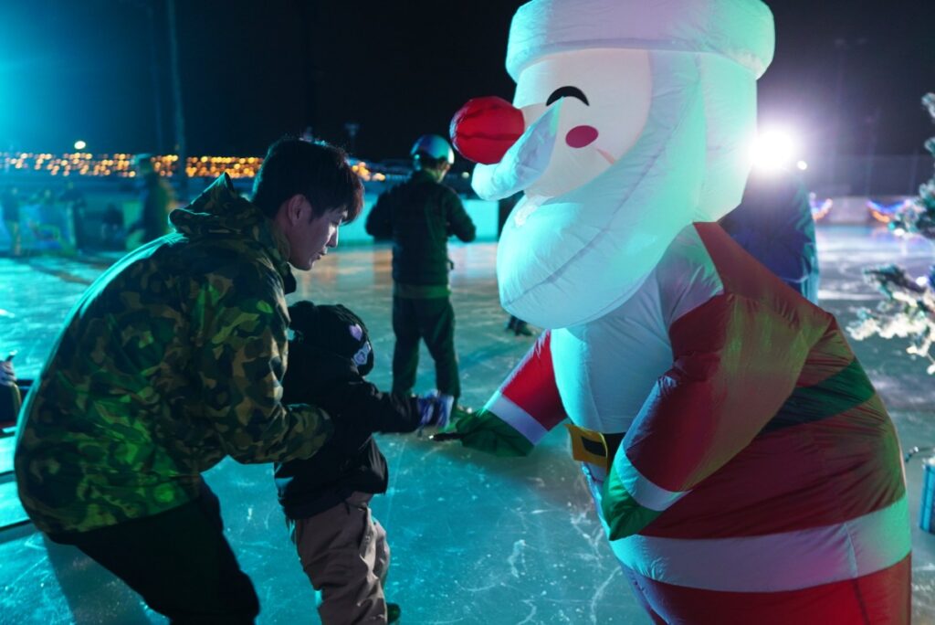 リンク中央には、天井近くまで届く約3メートルのクリスマスツリーが堂々と設置され、会場全体を華やかに彩っていた。
