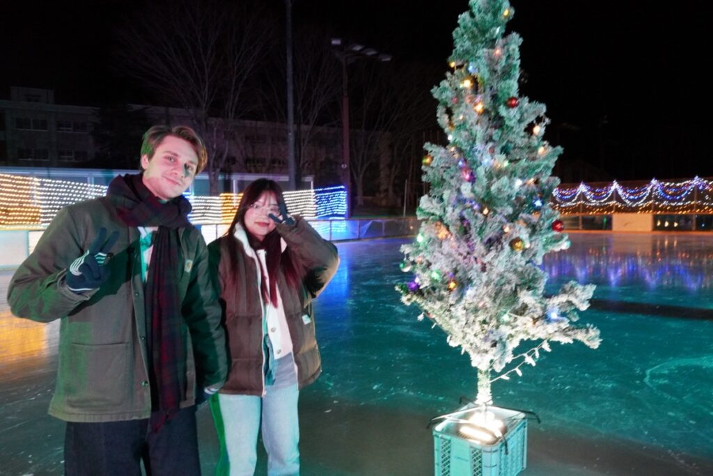 昼間は家族連れなどで賑わう同スケート場ですが、夜になるときらびやかな雰囲気に…?!