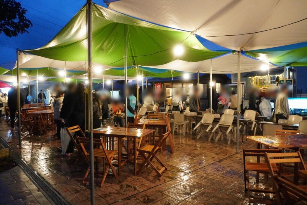 点灯式当日はキッチンカーなども多数出店しており、ちょっとしたお祭り会場のようなテントも設置されていました↓