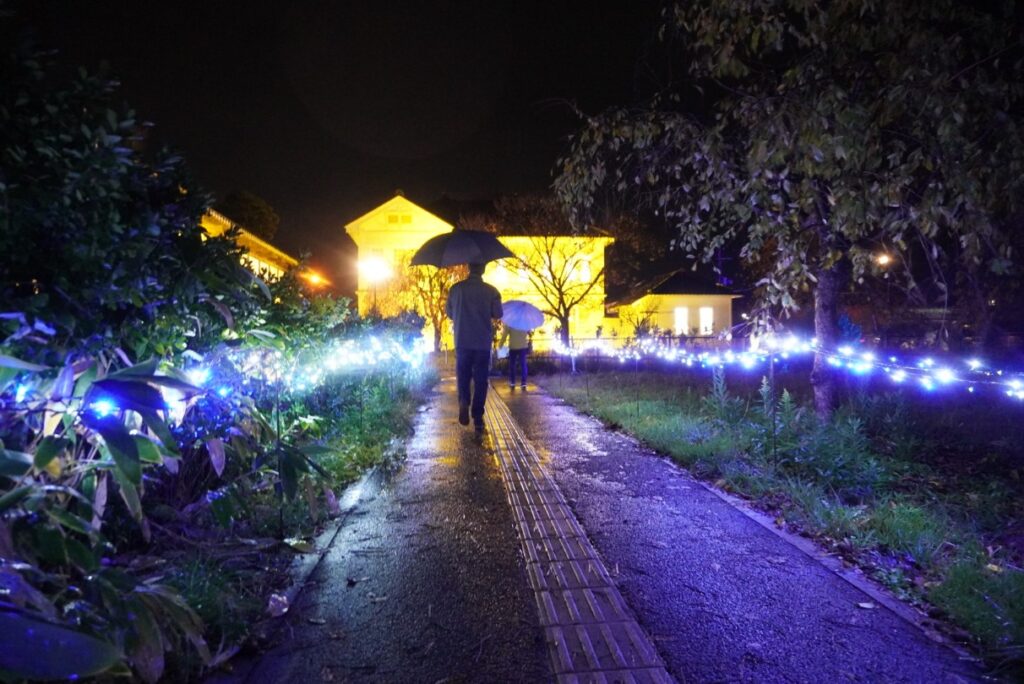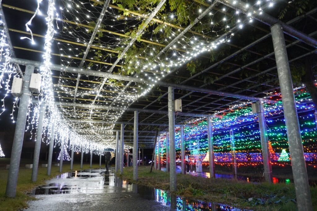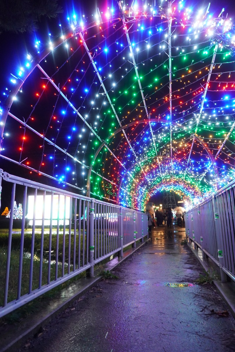くぐった先の広大な公園内に見えてくるのは色とりどりのイルミネーション。