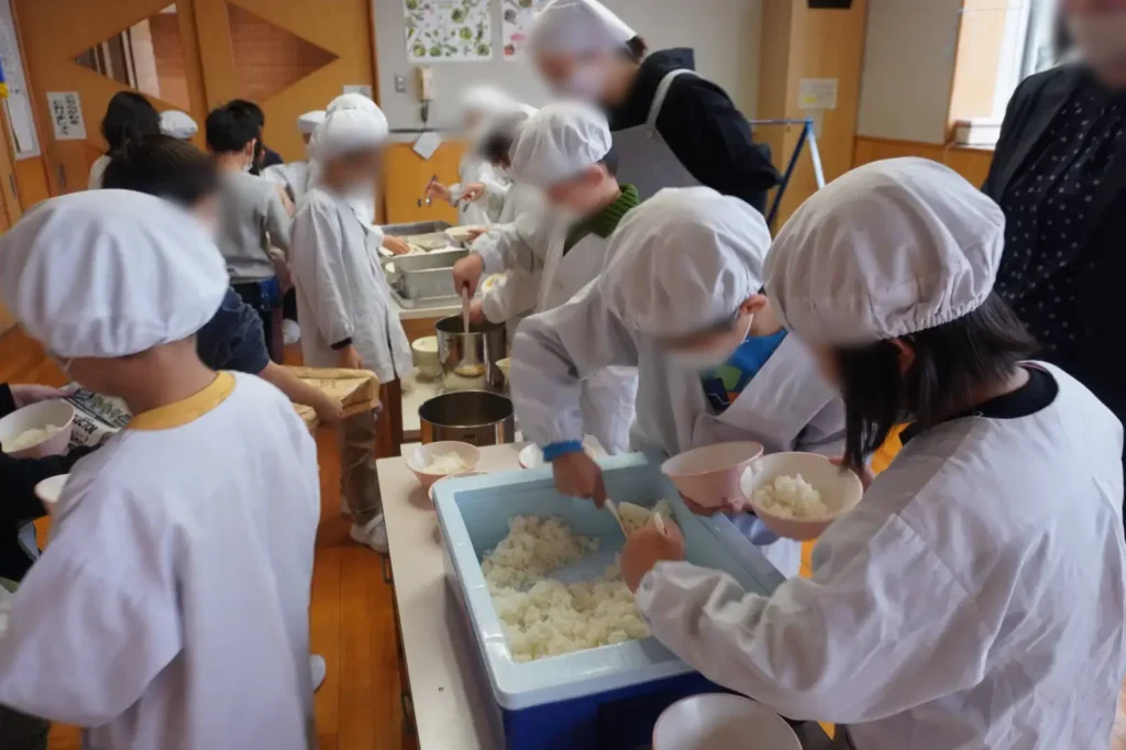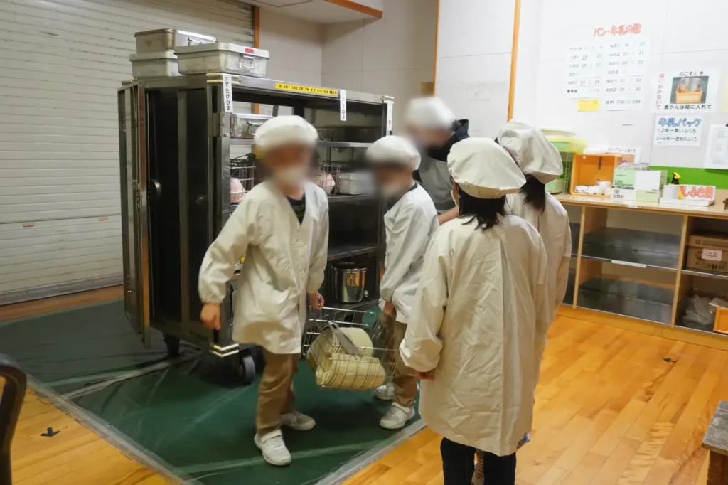 校内にお邪魔すると給食の準備を着々と進める懐かしき光景ッ…!!!