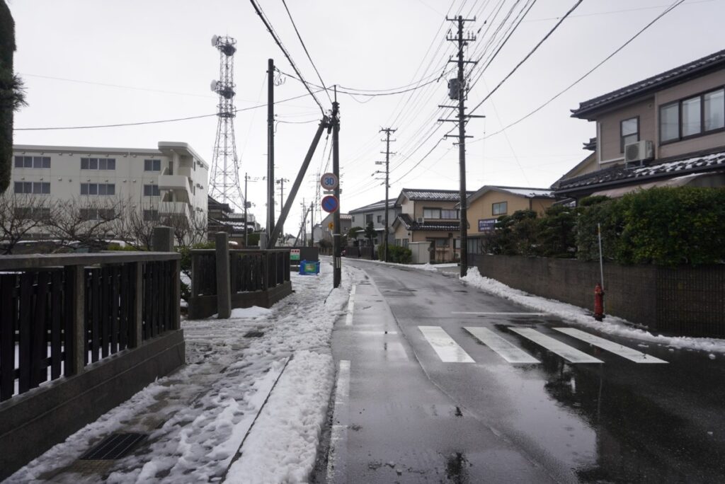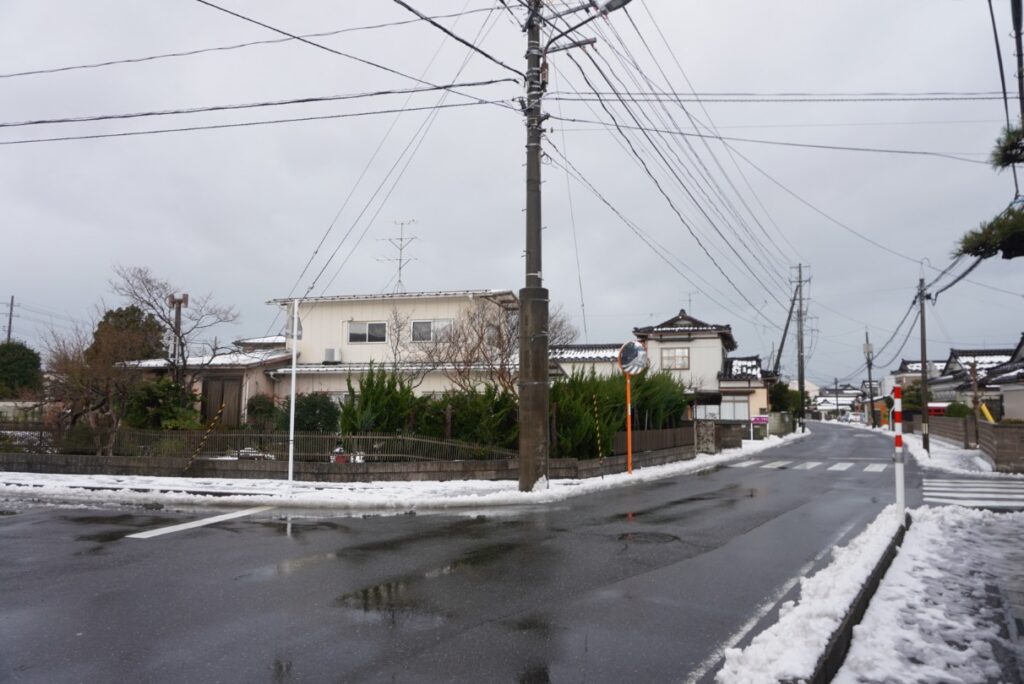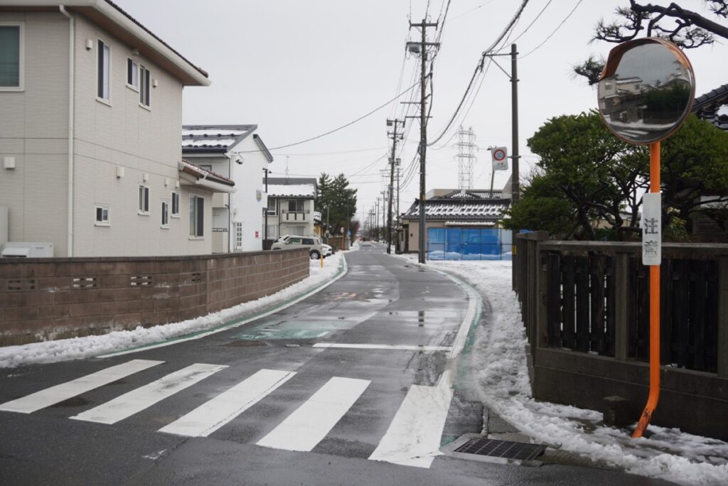 この交差点は見通しが悪く、両羽町方面からの左折車が電柱にぶつかってしまうケースが多いのだとか。