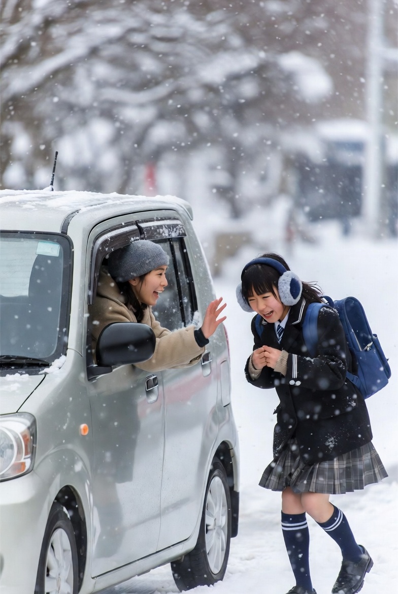 今とは違い父兄の送迎があるわけでもなく、でも寒い中歩いていると1台の軽自動車が止まり、中の若いお姉さんが車に乗っていけと誘ってくれました。