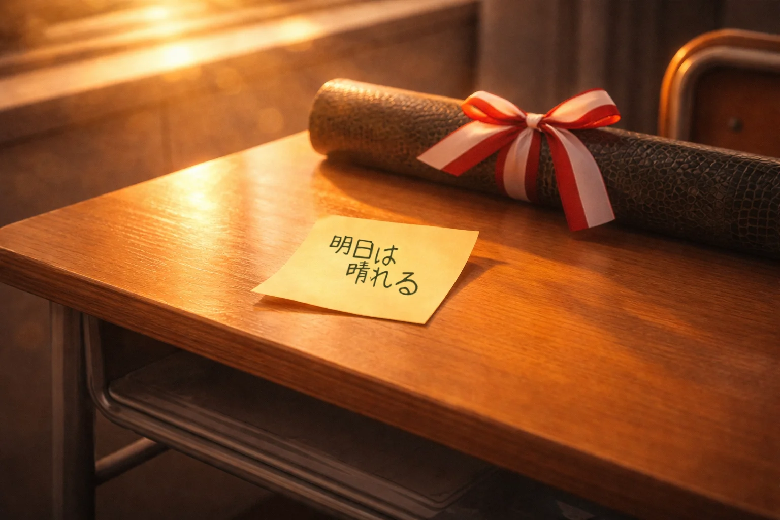 卒業式のあの日、誰もいない教室で一人で泣いていた私に、君が机に貼っていった「明日は晴れる」っていう下手な字の付箋。