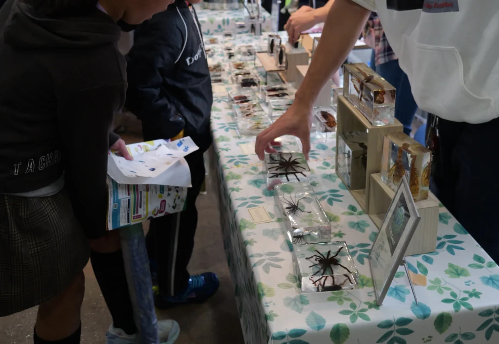 貝殻や昆虫・植物などの生物標本をレジン封入できる体験イベント。
