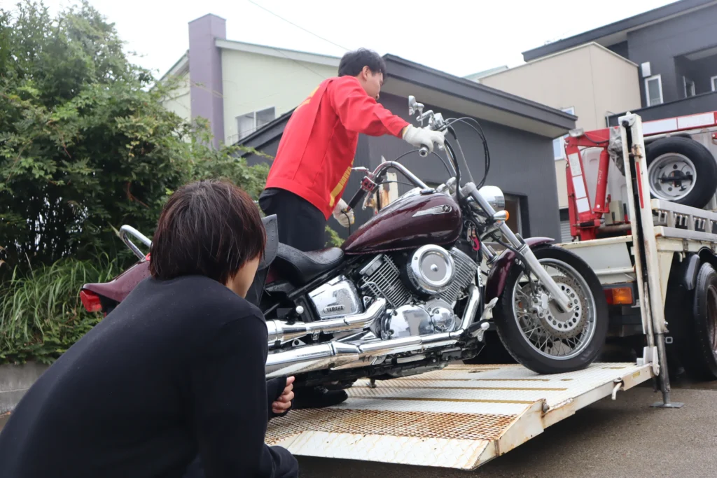 電話またはWEBで依頼すると、自宅や勤め先まで無料で出張、車両を引き上げてくれる!