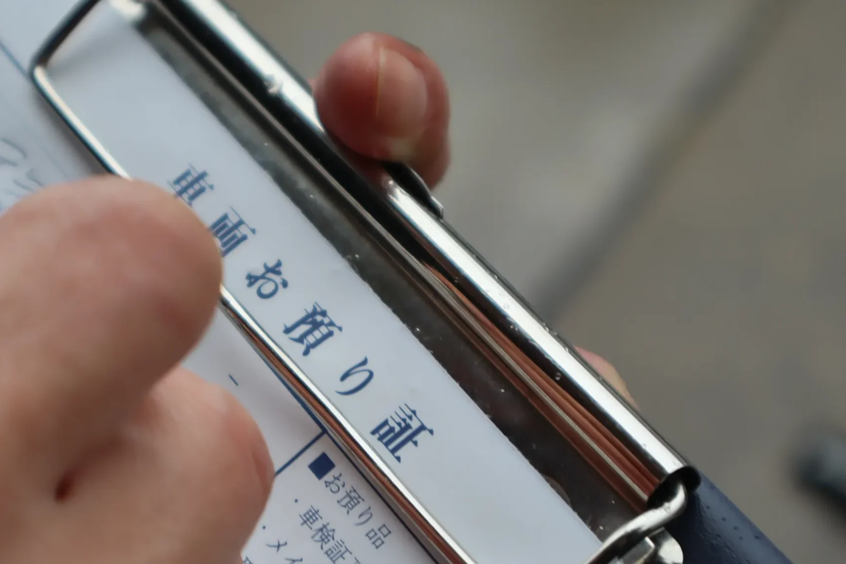引き上げ時は、バイクの状態を確認し、「車両お預かり証」を記入。