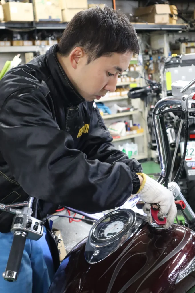 スタッフさんが真剣にバイクと向き合ってくれてるのを見ると、売る側も買う側も安心できるな〜。(見にきてよかったぁ)